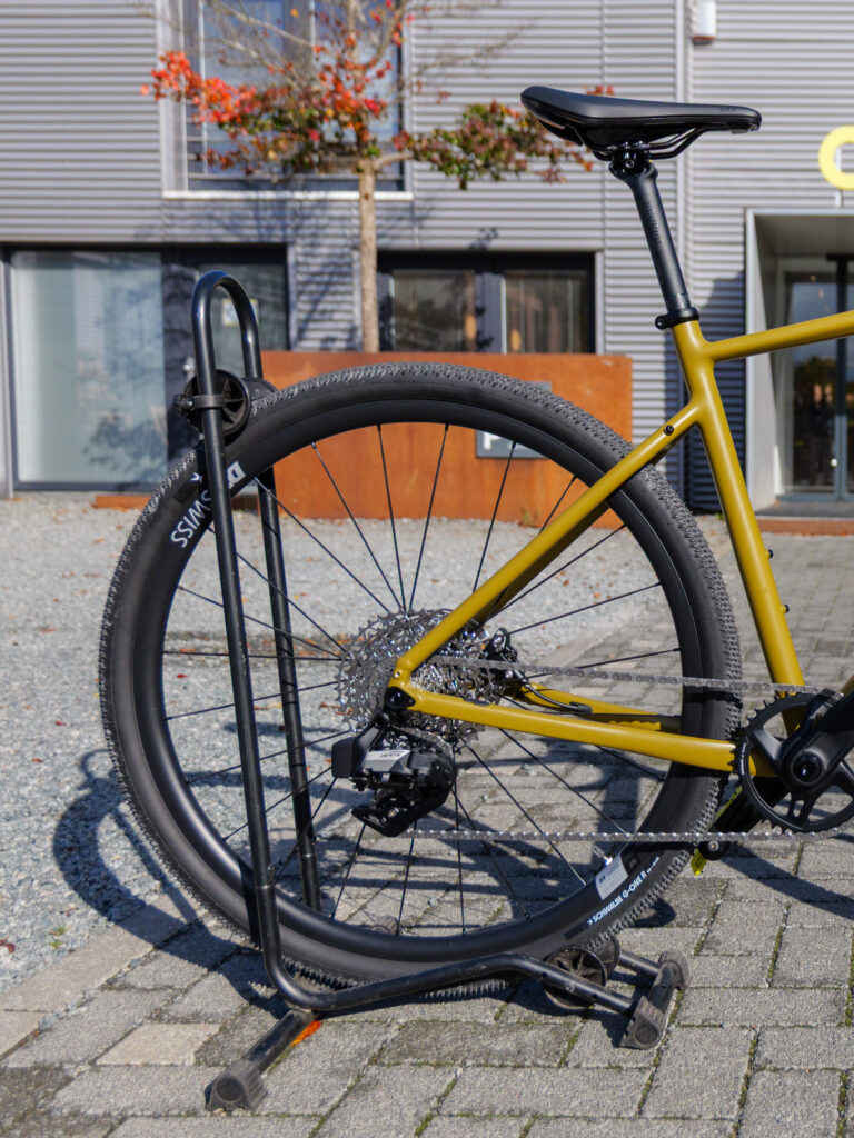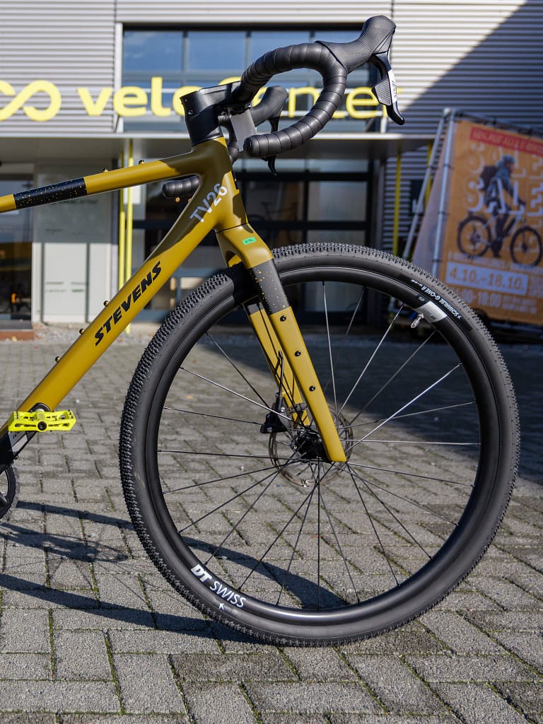 Mit seinem neu entwickelten Aluminiumrahmen in elegantem Woodland Green verbindet es Stabilität mit geringem Gewicht und einer sportlichen, kontrollierten Geometrie. Die STEVENS Full Carbon SL Gabel sorgt dabei für direktes Lenkverhalten und eine angenehme Dämpfung – perfekt für lange Tage auf Schotter, Asphalt oder Waldwegen.