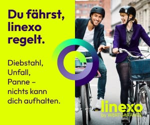 Mit den Linexo Fahrradversicherungen bist du sorgenfrei unterwegs: Rundumschutz bei Diebstahl, Schäden und Verschleiß – egal ob Alltagsrad, E-Bike oder Leasingrad. Faire Tarife, schnelle Schadenabwicklung und europaweiter Schutz sorgen dafür, dass du dich ganz aufs Radfahren konzentrieren kannst. Sicher. Flexibel. Linexo.